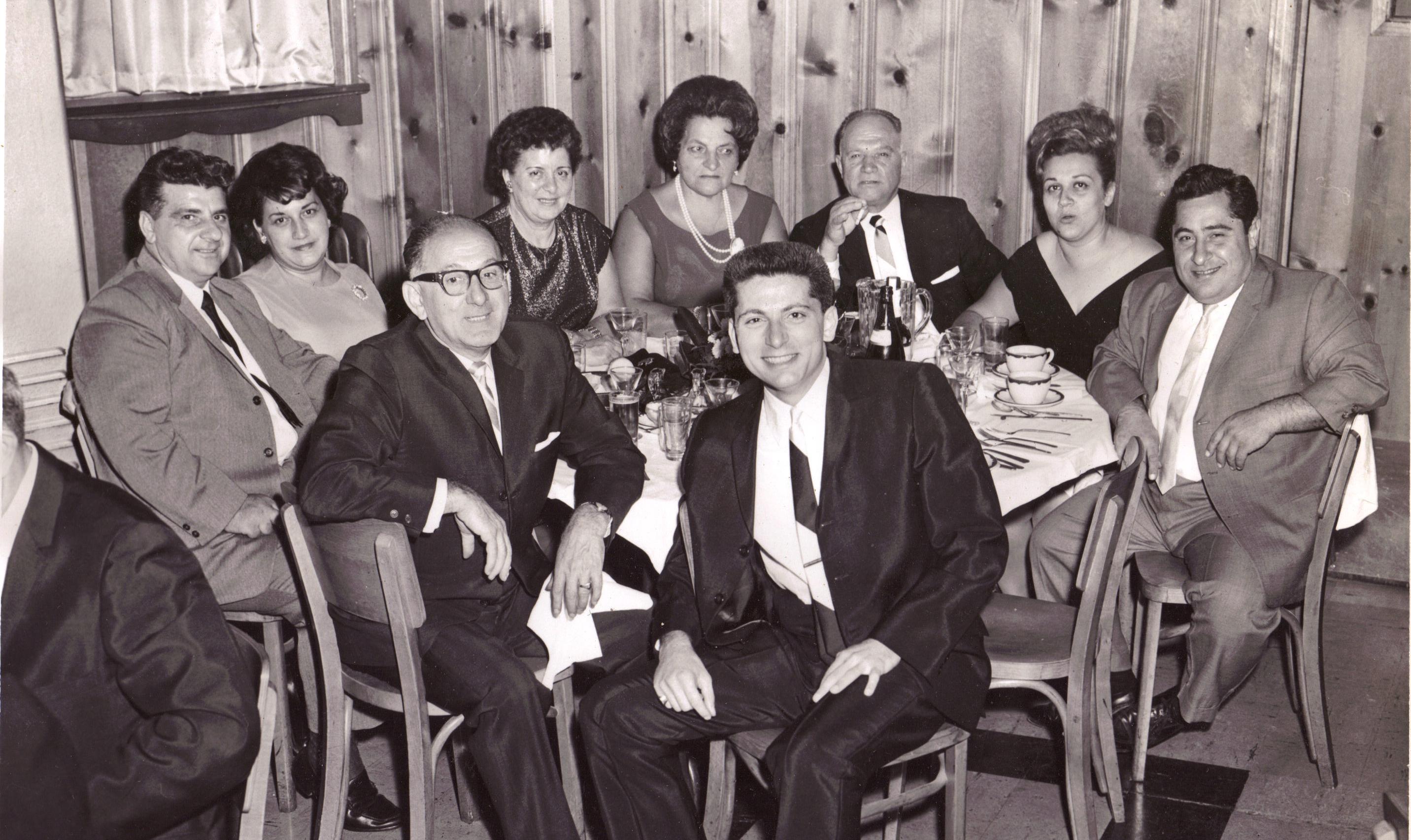 to the left of Gaetano, Mike Galgano; Man behind Gaetano, Luigi Cestone; 3rd woman to